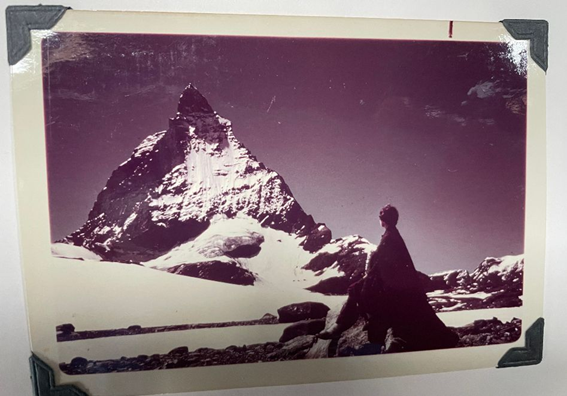 Matterhorn with Lynn in her plaid Scottish cape.
